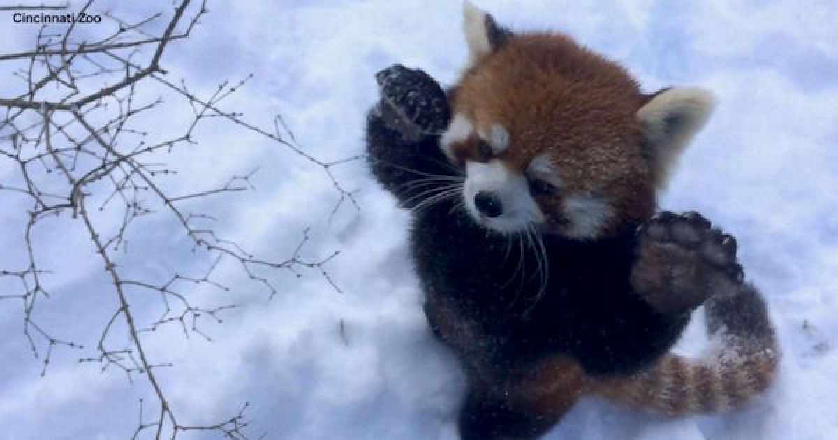 下雪囉下雪囉~ 小熊貓「High到舉手手」在雪地瘋玩