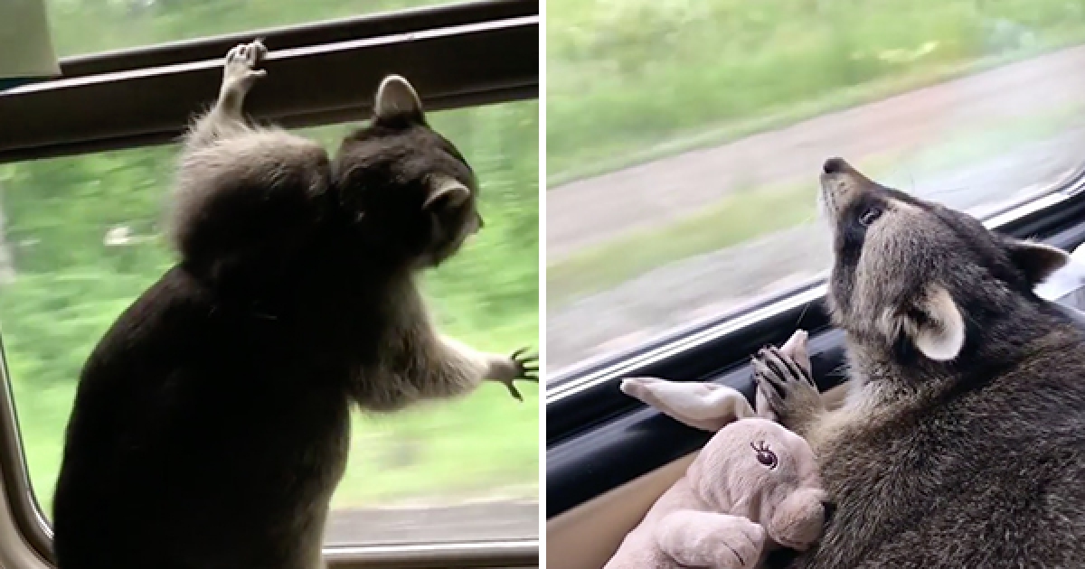 小浣熊搭火車「High翻亂竄」 猛盯窗外:風景動好快哦~