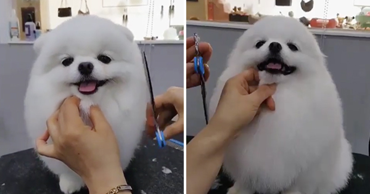 小博美一臉燦笑給剪毛 完成後變「蛋形博美」
