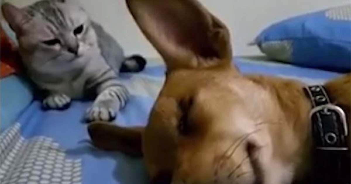 狗狗夢中不小心放屁 聞到臭味喵皇「搧兩下耳光」:很臭!給我醒來!