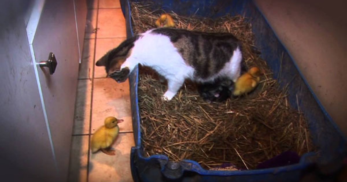 3隻小鴨子一出生就慘被拋棄 貓媽媽馬上收養餵奶畫面暖哭了