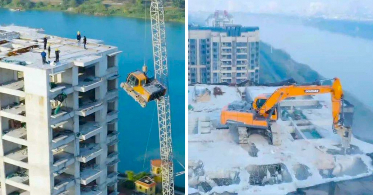 超猛違建!非法蓋到98米 挖土機「吊上30樓」直接拆除