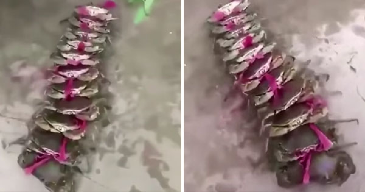 11隻被綁著的螃蟹拼命集體逃亡 眼尖網友一看:倒數第三隻在偷懶