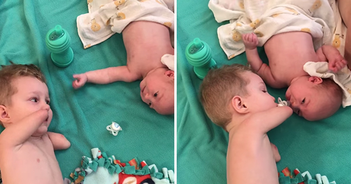 世上最棒的哥哥! 「無四肢男孩」全力扭動身軀 把奶嘴餵給大哭弟弟