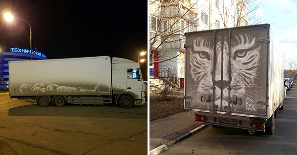 超狂! 不需要畫筆、顏料 神手專門找髒車「擦汙垢」作畫