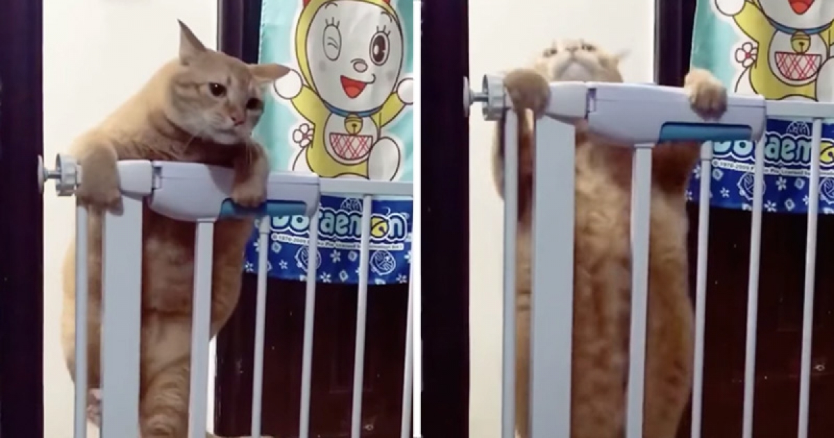 胖橘貓努力越獄「肥肚卻卡住」 下一秒「自動滑落」罐罐吃不到了