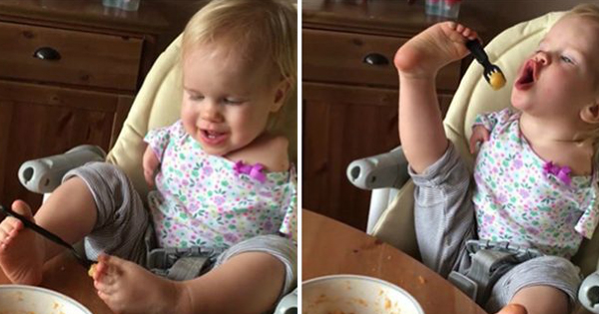 無臂小女孩靠自己「18秒吞一口飯」 網淚推:她好厲害