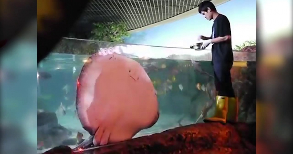 魟魚不甘心被飼養員冷落 衝出水面「打招呼」萌翻全場:我在這裡