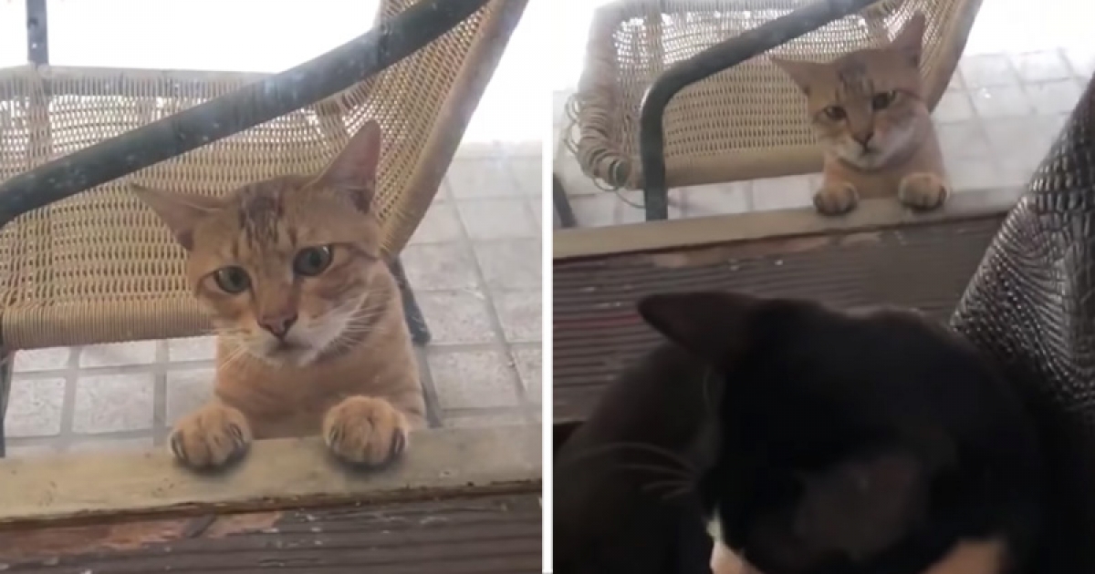 浪貓發現店內的喵喵爽吹冷氣 趴窗前露出的表情超可憐