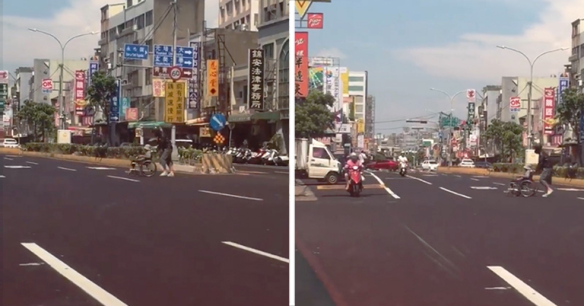 暖心騎士看到輪椅阿婆不方便過馬路 特別停下衝過去幫忙