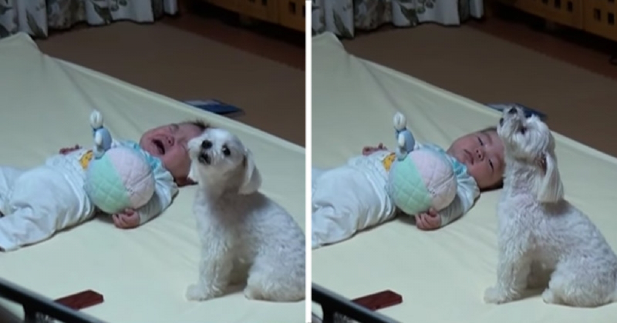 寶寶一哭狗狗就仰天「啊~嗚」 瞬間停止哭泣讓馬麻也給讚