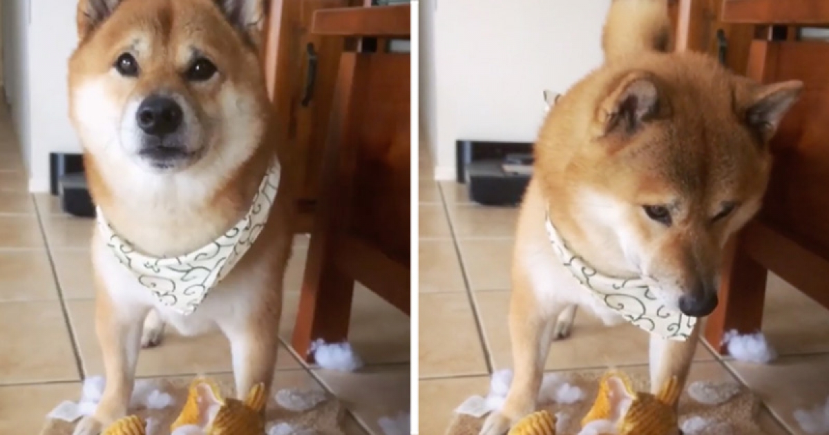 柴柴咬爛娃娃滿地都是棉花 馬麻一開口牠就「戲精上身」求原諒