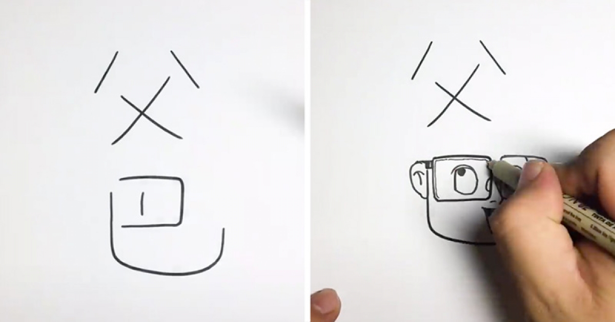 畫畫前先寫了一個「爸」字 幾分鐘後「變成父女圖」畫工超神