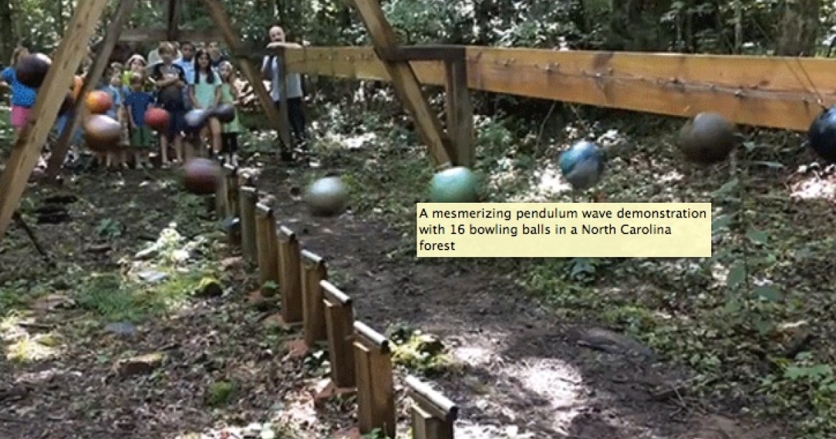 16顆保齡球一齊落下後開始「神秘搖擺」 看一眼就停不下來了