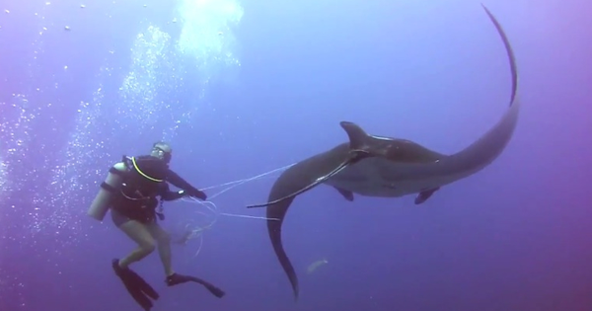 潛水員遇到「巨型魔鬼魚」靠近 牠痛苦求助:救救我...