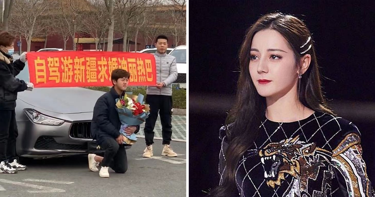麥鬧啊! 百萬網紅下跪「鮮花+紅布條」求婚迪麗熱巴 追9個月「守劇組10天」:藍寶堅尼、法拉利全送你