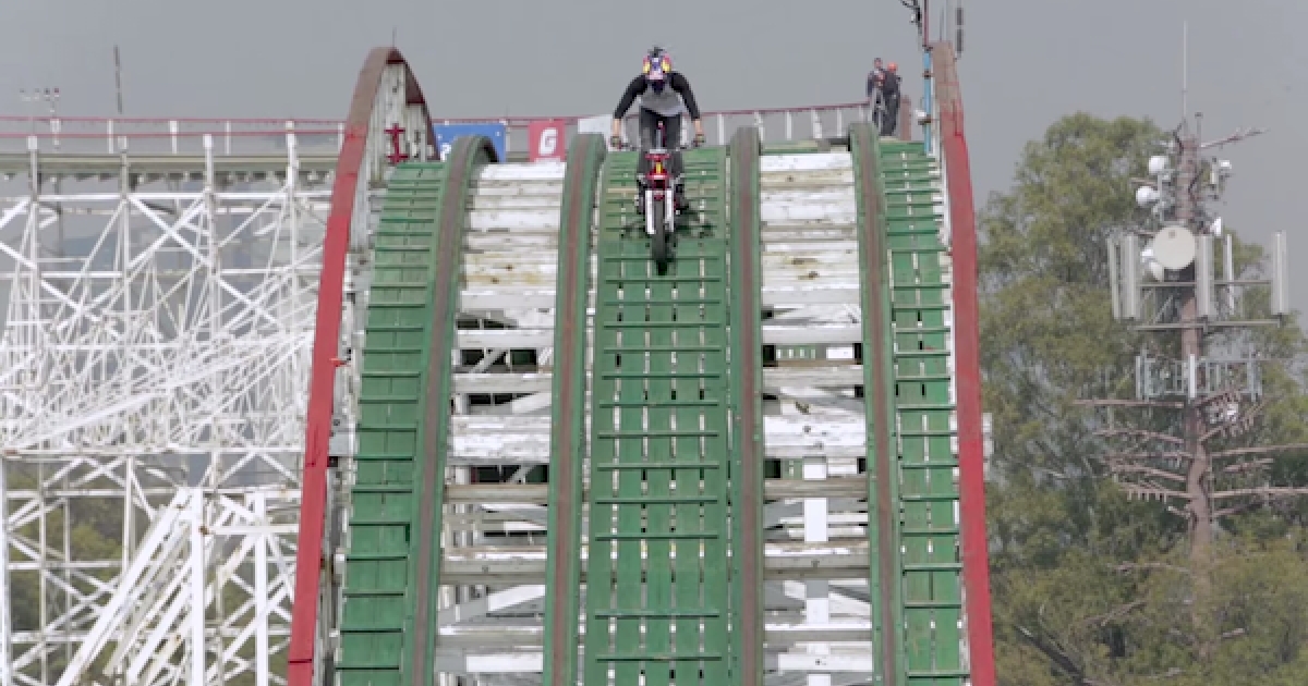 狂男「騎越野車」過雲霄飛車軌道 90度垂直落體把大家嚇到腿軟