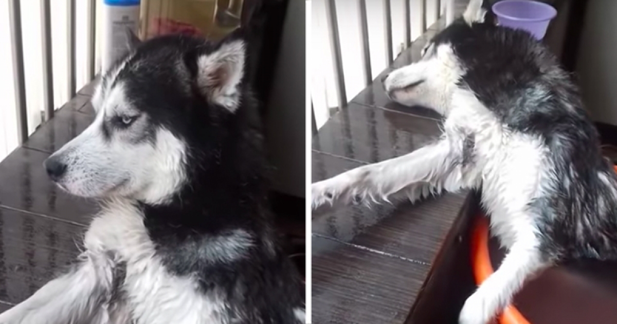 月月被泡進水桶「一臉厭世」 無視主人的安撫:我已生無可戀