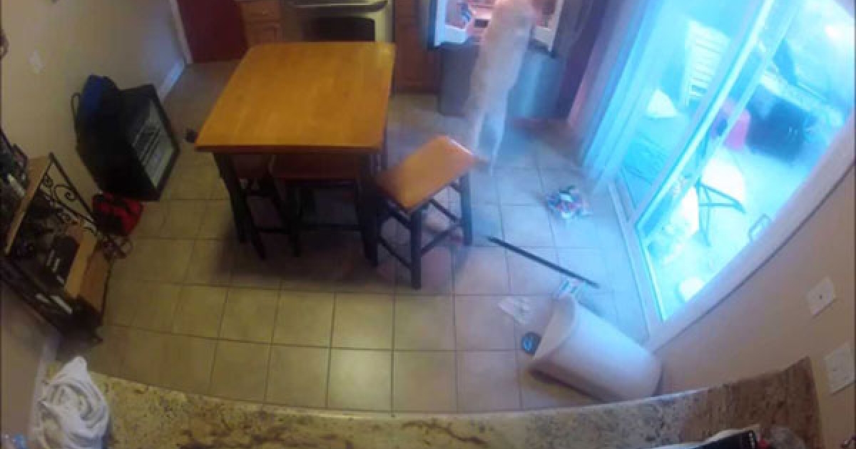 「我來瞧瞧有什麼好料的~」 拉拉趁主人出門撬冰箱為自己加菜