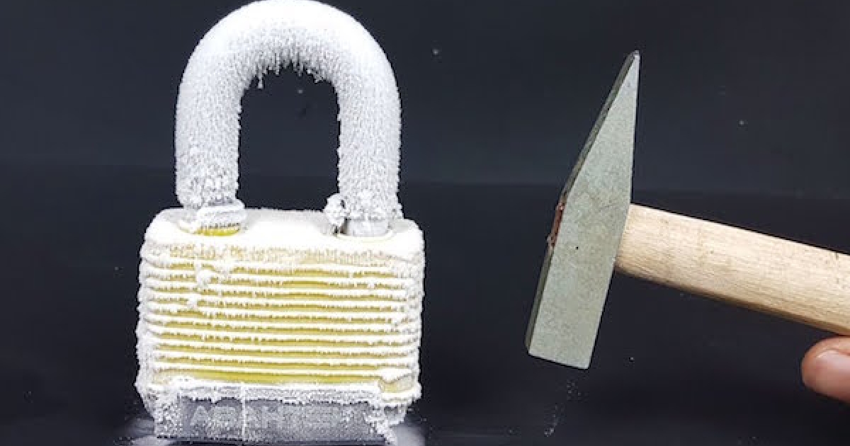 「負196度液態氮」瞬間凍住大鎖 榔頭一敲下去畫面很療癒