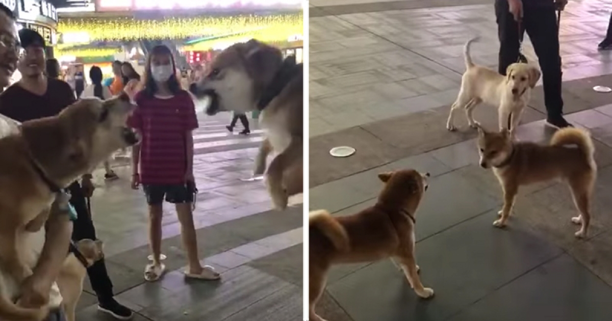 被主人抱著的2隻柴柴狂嗆聲 下一秒面對面瞬間卻變俗辣「沒事了」