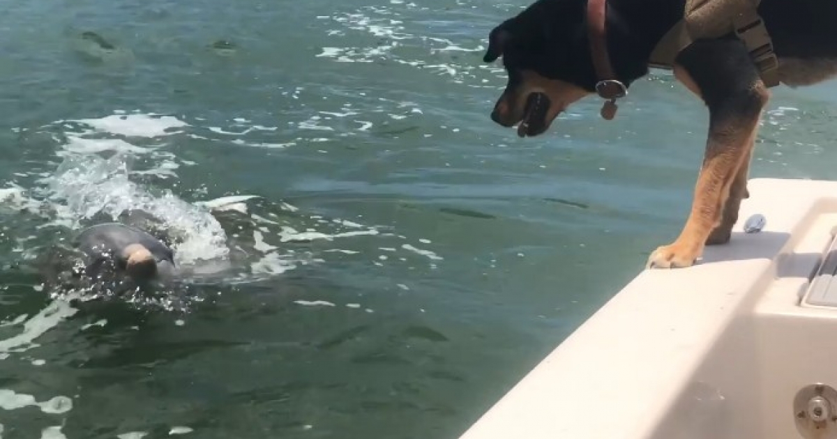 海豚和狗狗在海中進行「捉迷藏」 開心互動的模樣讓大家都被牠們感染了